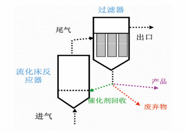 b) 流化床工藝中催化劑回收