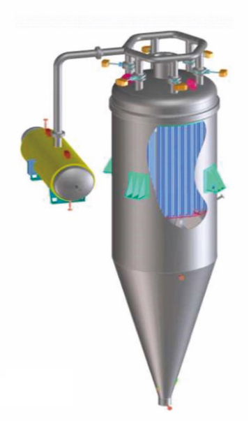 氣固分離過(guò)濾系統構成:殼體、濾芯、反吹管束、PLC控制系統